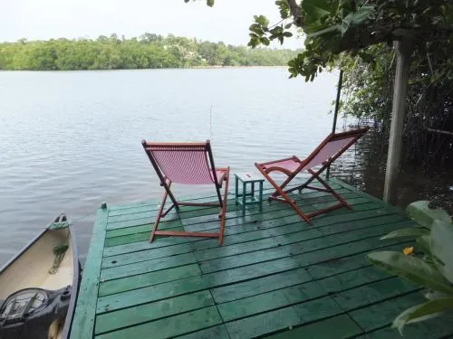 PJ's est une villa située dans un cadre naturel serein à côté de la lagune de Hikkaduwa, dotée d'une piscine privée. La propriété comprend un jardin paysager et une jetée sur la lagune.